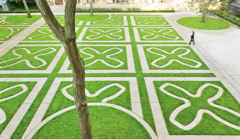 The renewal for the quadrangle provides a modern design that is developed out of deference to the history and traditions of medieval and gothic courtyards. The design provides a more formal the sense of space while accommodating the range of activities for which the quadrangle is used. The central lawn is reestablished as a unifying element in the space, with paved circulation routes moved to the perimeter.