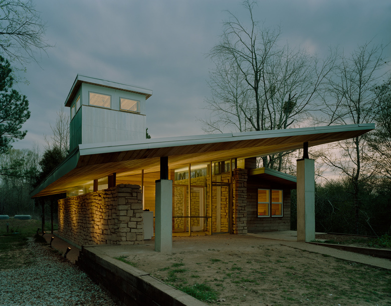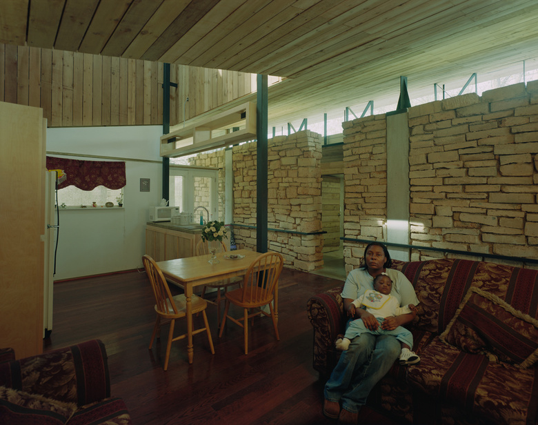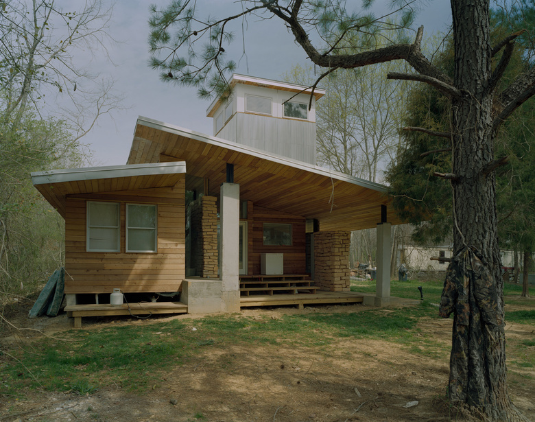 The Green family house, made from Papercrete, a construction material composed of pulped paper, clay, and cement that has existed since the early 1920s but has never been used extensively.