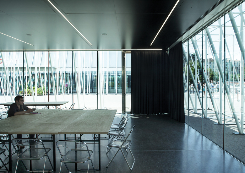 The project has been realized following the principles of lightness, transparency and modularity. These aesthetics evoke impressive areal frameworks such as Eiffel’s structures and other researches on the meaning and power of lightness.