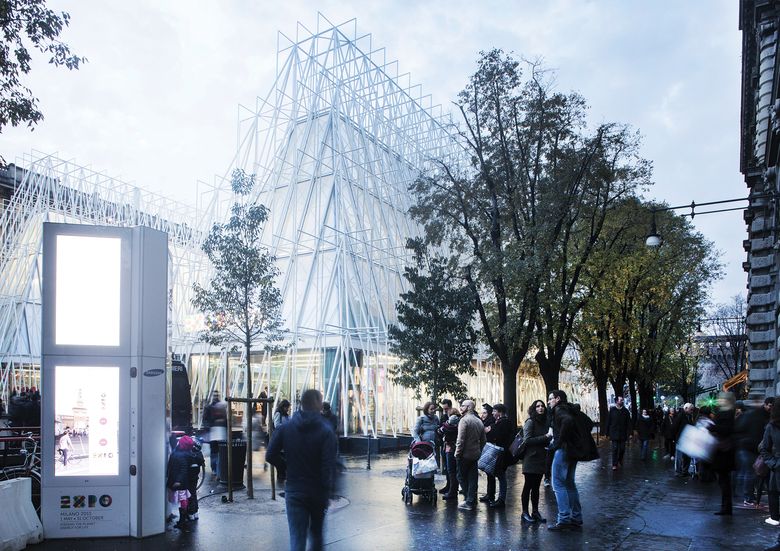This openness represents a vibrant exchange that will be peculiar of the city of Milan before and during EXPO 2015. The new Info point, expression of lightness, will showcase the oncoming events, without becoming the main character itself.