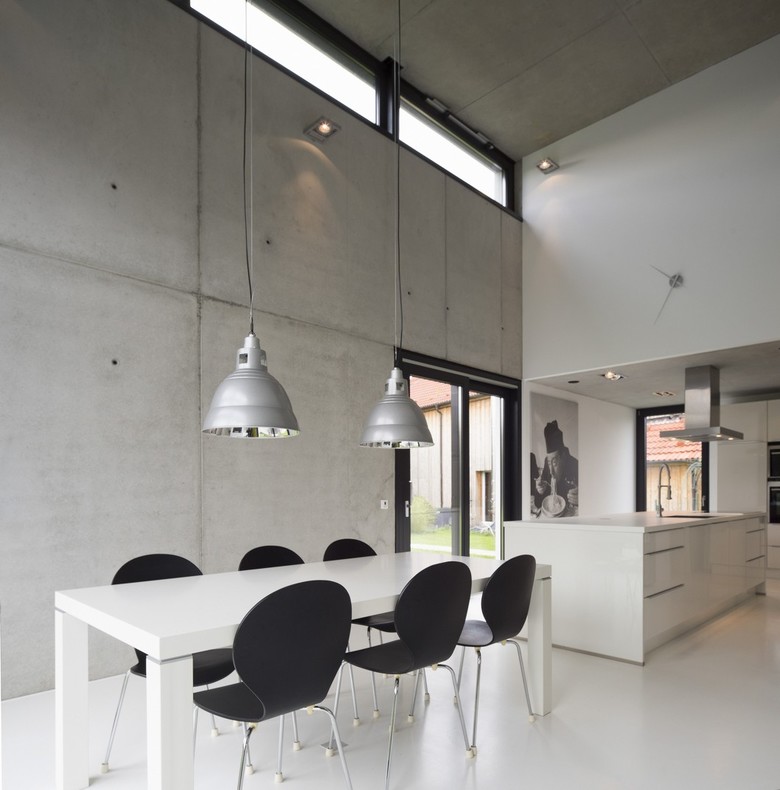 Das Gebäude befindet sich am Rand einer Grünzone die sich innerhalb einer Gemeinde des zentralen Schurwaldes befindet. Es besteht aus einem einfachen, fast Quadratischen Wohnhaus und einer daneben stehenden Garage.Ergänzt wird das Ensemble durch eine L-Förmige Mauer die mit den beiden Baukörpern eine Art Hof bildet durch den der Zugang zum Gebäude erfolgt. Der Eingang ist höher gelegen und befindet sich in einem „aus dem Gebäude ausgesparten“ Bereich, der den Eingang deutlich markiert. Somit wird der Besucher bewusst erst durch den geschützten Innenhof an das Gebäude herangeführt.Nachdem das Gebäude betreten wurde öffnet sich der Blick durch das offene Treppenhaus in den großen zwei Geschosse hohen Koch-Essbereich an der Westseite des Gebäudes. Der Küchenblock erstreckt sich teilweise in den hohen Bereich und bildet eine Linie mit Essen und Terrasse. Daran angelagert befindet sich im Süden der niedrigerer Wohnbereich. Der Garten erstreckt sich L-Förmig im Süden und Westen um das Gebäude womit Wohnen, Essen und Kochen jeweils Kontakt zu einer großen Gartenfläche haben.
