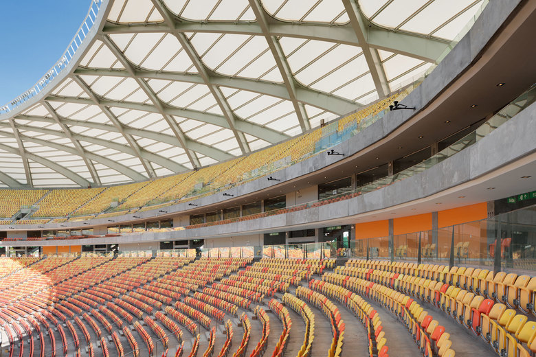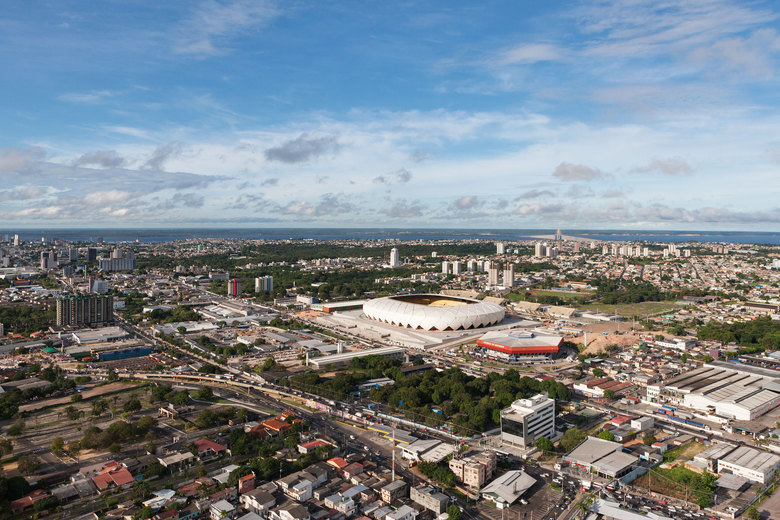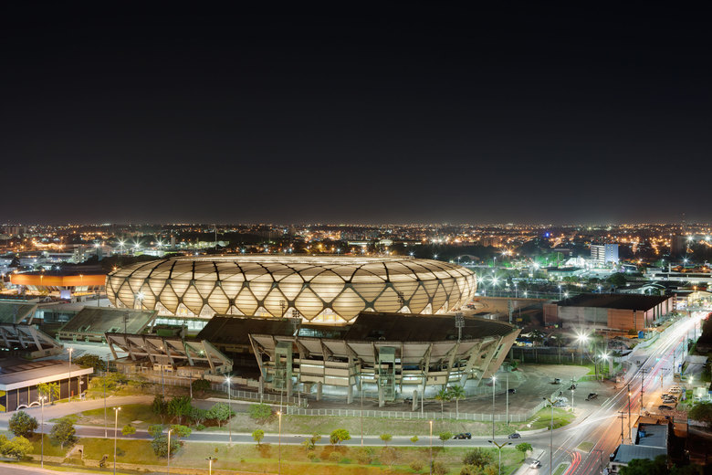 Inspired by the wildlife around Manaus the key design idea was born for the envelope of the new Arena da Amazônia. Thus, the arena now reflects the technical interpretation of regular structures found in nature, like the genus of water-lilies Victoria Regia, the pattern of a perfect bird’s nest, or a basket woven from palm tree leaves. The built reality of the scheme, a diamond-shaped grid shell, is truly impressive as the associations leap out, especially at night time when the membrane is brightly illuminated. The construction work for the Manaus stadium began in 2009 in order to meet the FIFA requirements for a 2014 World Cup venue. On 9th March 2014 the first match took place under the new roof. The Arena da Amazônia hosts group stage and second stage matches of the FIFA World Cup.