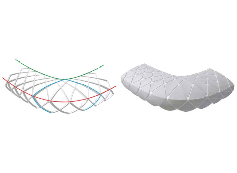 The primary structure can be allocated to the group of grid shells. In particular the large opening above the playing field and the sharp bend between roof and façade created a challenge in structural engineering. The structure features articulated bearings at the root points to avoid forces of movement. In this case the static system works with only one compression ring at the inner edge of the roof and a tension ring at the outer edge. Due to the interaction the cantilever moment can be absorbed by a horizontal couple of forces. To facilitate transport and assembly the welded box sections were fabricated in modular segments. The slender components were additionally braced against bulging. At intersection points the sheet thickness of the girders has been increased to contain bursting forces. Both, roof and façade consist of a high-strength, resilient fiberglass membrane that is PTFE- coated. A secondary load bearing structure serves as a frame and supports the membrane. It comprises a diagonal structure that features slightly pre-curved, suspended stringers.