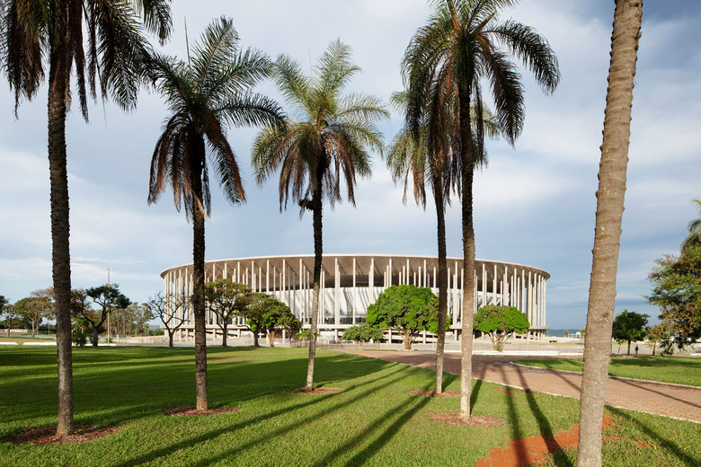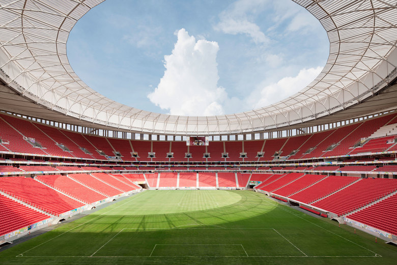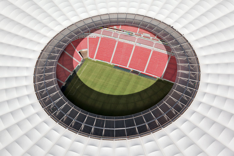 The Brazilian capital that is listed as world heritage by UNESCO has just turned 50 years old. Brasilia is almost a “sacred city” of the modern age for structural engineers and architects. The architects of gmp and the engineers of schlaich bergermann und partner, together with Castro Mello architects and Luis Pitta ETALP engineers were therefore honored to be part of the team adding another monumental building to Niemeyer’s and Costa’s ensemble. This way a new multifunctional stadium was created that draws on the tradition of Brasilia. The interplay between ramps, bridges, long slender pillars, and the monumental circular roof projecting far over the stadium bowl comprise the key characteristics of the design. The combination of the lightweight membrane roof floating within a sturdy concrete structure created a remarkable building that lives up to its location. Since 2010 the National Stadium in Brasilia had been modernized to meet the FIFA requirements for the 2014 World Cup. On 18th May 2013 it was ready for the first match under the new roof. During the FIFA World Cup several group stage matches, and one semi- final match within the second stage will take place in the national stadium in Brasilia.