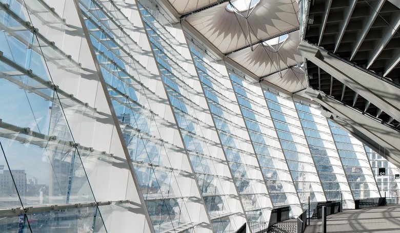 The stadium located close to the city centre of Kiev has been revitalized and extended. The mayor redevelopment of the “Olimpiyskiy” National Sports Complex comprises in rebuilding the lower tear and adding many facilities to achieve UEFA standards for the European Championship 2012. Part of the redevelopment was a new roof structure which serves to protect the spectators from the elements as well as enabling state-of-the-art lighting systems. The roof structure based on a pretensioned spokes wheel structure is designed with a rather dense structural grid due to the high snow loads in Kiev. Further this dense grid enables the use of very translucent membrane materials that will give a bright stadiums interior. The façade structure will be made of glass to enable that while approaching the stadium the old upper tear of the “Olimpiysky” can still be seen.
