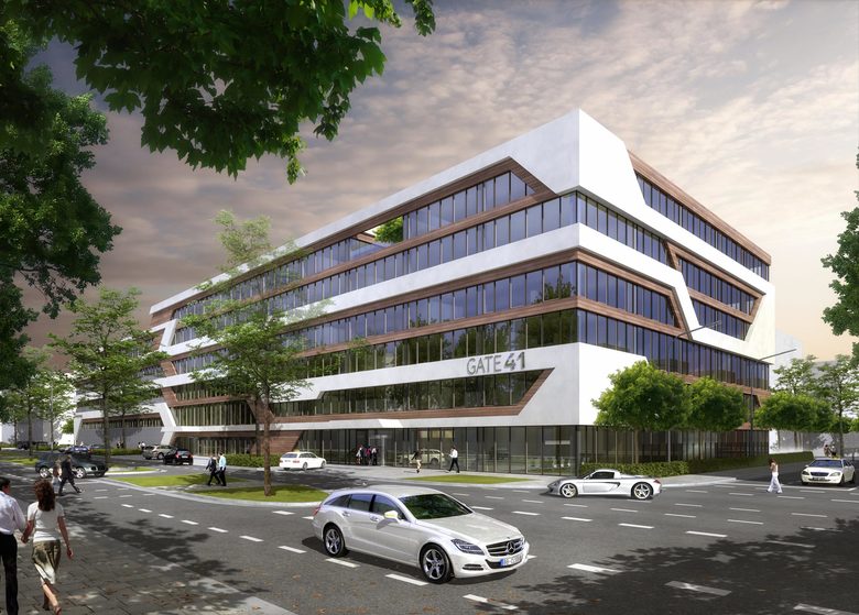 As a joint development (a partnership of convenience) of the towns of Böblingen and Sindelfingen the “Flugfeld” quarter represents an attractive complex for lots of companies. With its dynamic, powerful architectural idiom, the Gate 41 project symbolizes the complex’s innovative power. The building accommodates offices, commercial areas, production facilities and a parking deck in a flexible and economic concept.