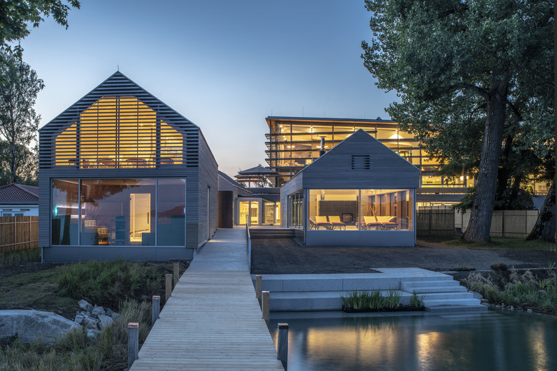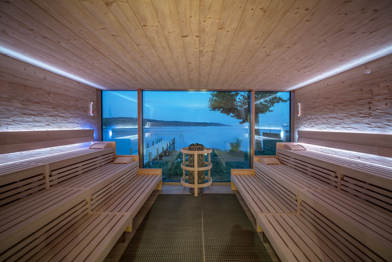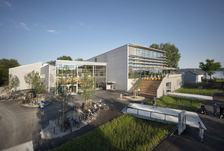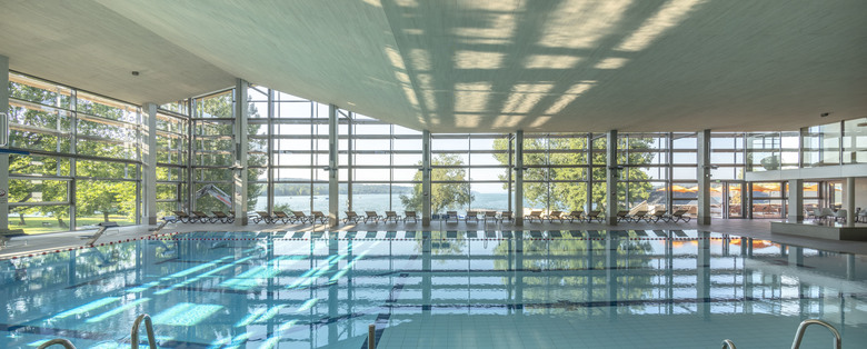 Attraktivierung des Bades durch Erweiterung, Umbau und Sanierung der gesamten Anlage. Neugestaltung des Hallenbades mit 25m-Becken, Lehrschwimm- und Kinderbecken, Sprungturm (3m, 1m), Rutschen (außen und innen) und Gastronomie sowie Freibad-Umkleiden und Kiosk. Erweiterung der Schwimmhalle durch Versetzung der Südfassade. Neuerrichtung von Außensaunen in Holzbauweise mit direktem Zugang zu Hauptgebäude und See. Im Hauptgebäude Einbau von Sammelumkleiden. Umbaumaßnahmen am Hallenbad unter laufendem Betrieb des Freibades. Behebung umfangreicher Betonschädigungen aufgrund von Chlorideintrag am Bestand. Aufwendige und komplexe Sondergründungsmaßnahmen im anstehenden Seeton. Nachweisführung Dachkonstruktion aufgrund höherer Anforderungen und Lasten aus neuer Schneelastzone.