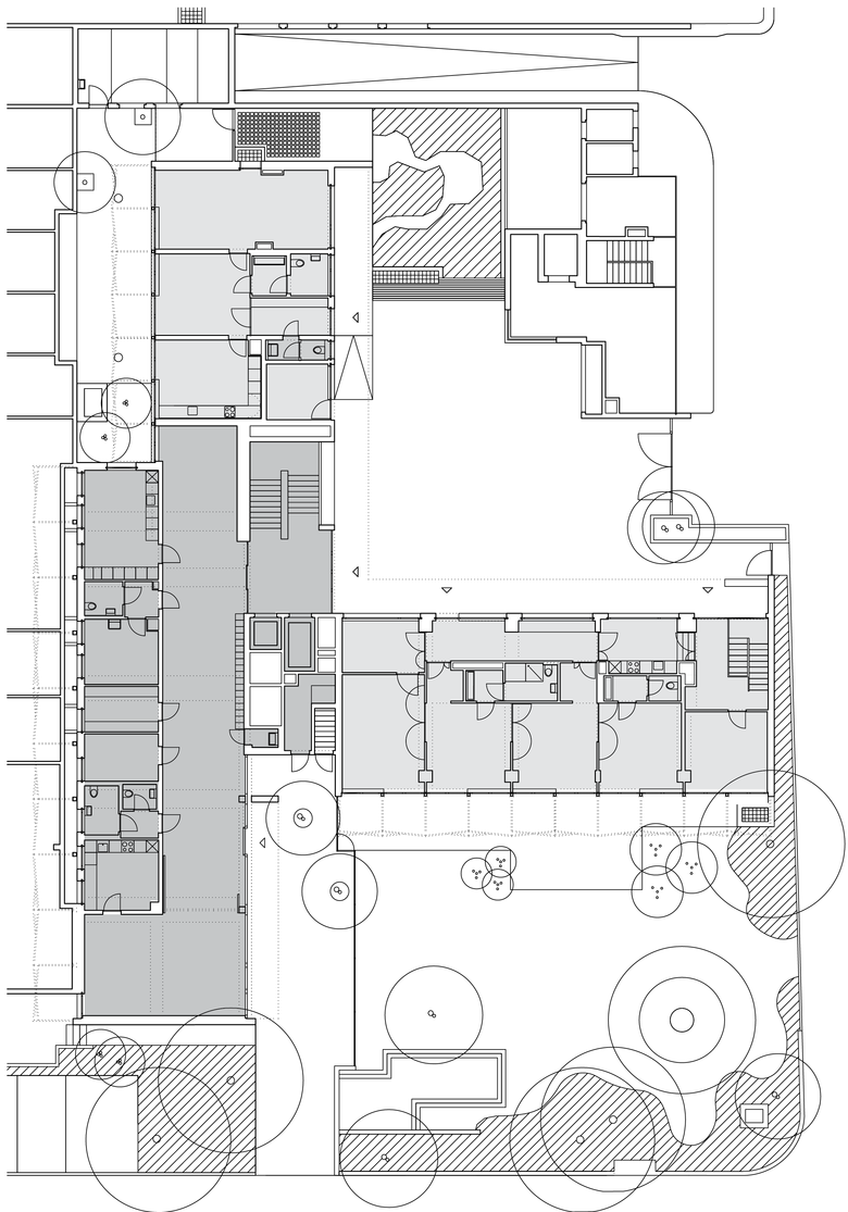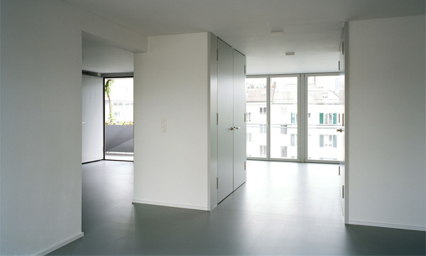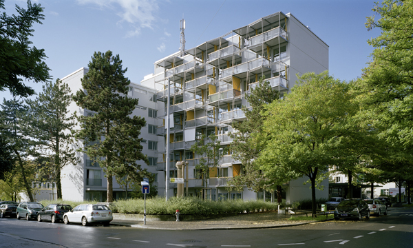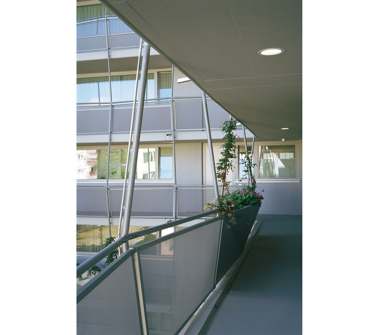 Über den Raster der Schottenbauweise hinweg werden in einem Betonbau der 1960er Jahre 51 ineinander verzahnte Alterswohnungen gestaltet. Die neuen Wohnungen erlauben den Rückzug in eine ungestörte Privatsphäre, eröffnen aber auch Raum für spontane Kommunikation mit den Nachbarn. Dieses gemeinsame Leitmotiv bestimmt Grundrisse wie Fassaden. An die Stelle des Gegensatzes von Vorder- und Rückseite tritt eine zweiseitige Orientierung. Essbereiche grenzen an die Laubengänge, welche mit einer bepflanzten Geländerstruktur den Charakter von Vorgärten annehmen.