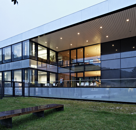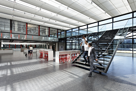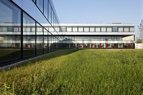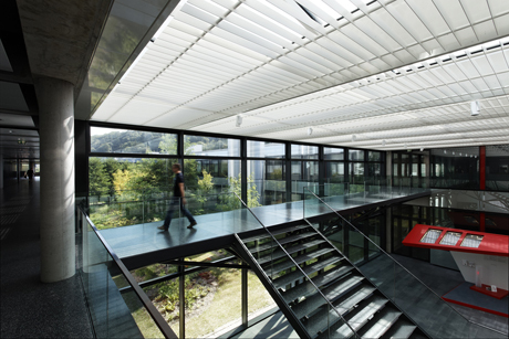 The building works for the Fronius Research and Development Centre began in November 2008. The design reflects both structure and corporate identity of the Austrian global player. Continuity and innovation are Fronius core values. The relationship of the new buildings to the building of the founders’ generation reflects the belief that the future derives from the past. The corporate colour on this building underlines its importance within the ensemble. The companies’ architectural language is expressed in exteriors as well as interiors. The ensemble communicates the companies past, its recent transformation and visions for the future. Fronius message and mindset are reflected in the architecture: clarity and simplicity in the arrangement of the building volumes, open and flexible structures fostering good orientation, an energy efficient facade and the use of renewable energy - protection of the environment and sustainability are paramount.