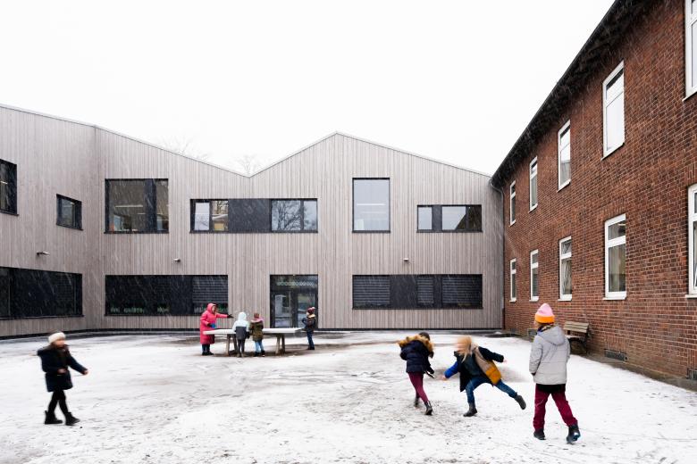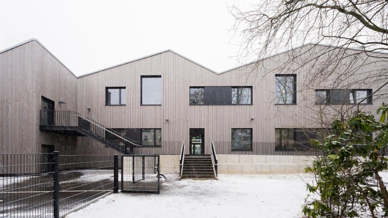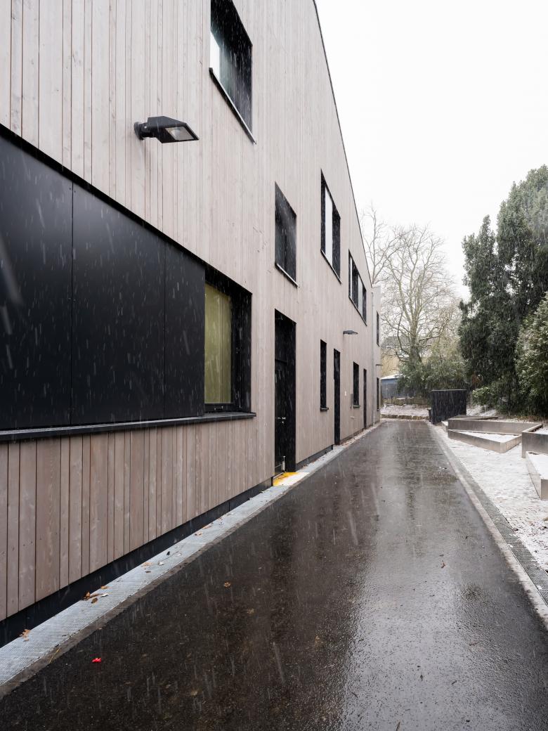 Die größte Herausforderung bestand darin, die Baumaßnahmen auf beengtem Grundstück in innerstädtischer Lage im laufenden Schulbetrieb durchzuführen und dabei Störungen für Schüler*innen und Lehrer*innen zu minimieren. Auch ein Grund dafür, die Neubauten als vorgefertigte Holzsystembauten zu errichten. Durch die ganzheitliche Planung wurden nicht nur architektonische, sondern auch organisatorische Aspekte berücksichtigt.
