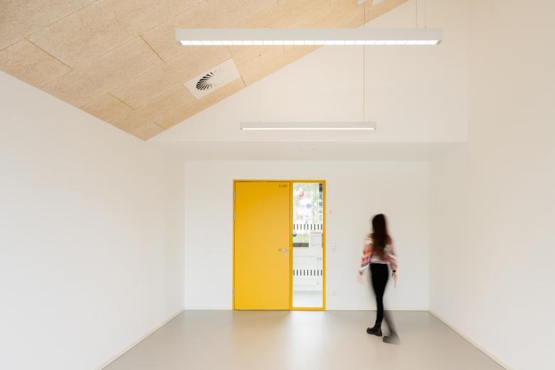 Der Fokus lag auf einer sinnstiftenden Integration des Neubaus in die vorhandene Bebauungsstruktur, wobei die Schaffung von zusätzlichen Klassenräumen für 100 Schüler*innen und einer modernen Schulmensa im Vordergrund stand. Die bauliche Lösung von Sehw schafft eine hohe Aufenthalts- und Raumqualität, indem die Dachlandschaften auch im Innern wahrnehmbar sind und zudem sozialen Mehrwert durch an die moderne Pädagogik angepasste Raumlandschaften und informelle Lernbereiche. Damit wurde nicht nur das Raumangebot um einen Zug erweitert, sondern auch den steigenden Bedürfnissen im Bereich der schulischen Ganztagsbetreuung und Verpflegung Rechnung getragen. Das gesamte Vorhaben wurde unter Sicherstellung einer nachhaltigen und energieeffizienten Bauweise geplant und realisiert.