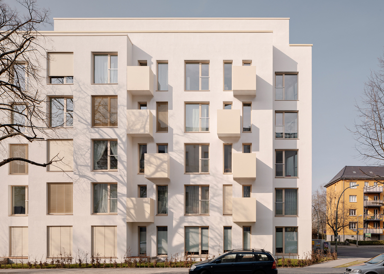 Berlin Pankow haben wir ein Wohngebäude mit 26 modernen Wohneinheiten realisiert. Wobei eine der Wohneinheiten als Town-House mit drei Geschossen und separatem Eingang konzipiert ist. Das Gebäude besetzt selbstbewusst ein Eckgrundstück. Es besteht neben dem dreistöckigem Town-House aus einem Gebäudeteil mit fünf Geschossen und einem Staffelgeschoss. Die Erdgeschosswohnungen verfügen zusätzlich über Vorgärten, wohin die höher gelegenen Wohneinheiten mit Balkonen, Erkern und Dachterrassen ausgestattet sind. Außerdem gibt es einen Gemeinschaftsgarten im Hof mit einer Spielplatzfläche von 104 m². Die Wohnungen sind für Paare oder Familien mit Kindern konzipiert und hochwertig ausgestattet. Von den 26 Einheiten sind acht Wohnungen und alle Geschosse barrierefrei ausgebildet. Abgesehen von der Gründung, den Kellerwänden und dem aussteifenden Treppenhauskern wird das Gebäude in vorgefertigter Holzbauweise errichtet.