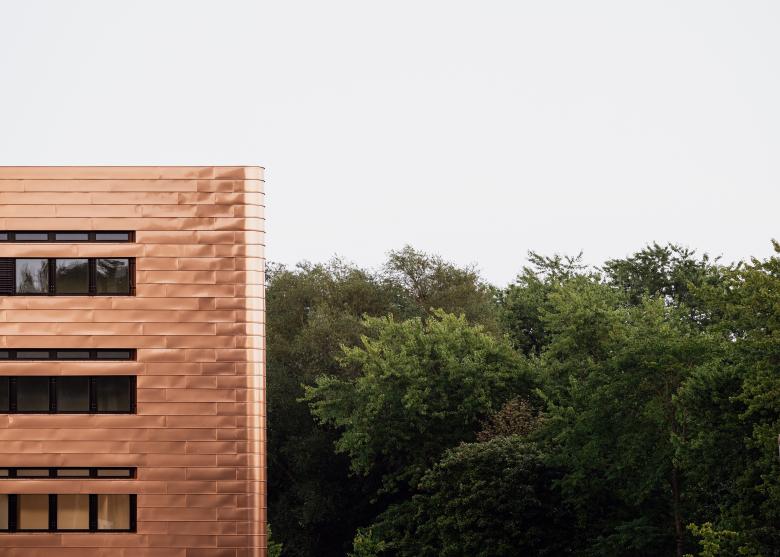 Sehw schafft seit vielen Jahren Räume für Wissenschaft, gestaltet damit Schaufenster der Wissenschaft und transportiert über die Architektur Bilder von wissenschaftlichen Innovationen nach außen. War es bei unserem ersten Gebäude für die Fraunhofer Gesellschaft, dem Institut für sichere Informationstechnologie (SIT) in Darmstadt die Gestaltung der Gebäudehülle als QR-Code, so ist es in Rostock die Kupferspule, die für innovative Forschungskraft steht. Der Neubau des Technikums für das Institut der Elektrotechnik der Universität Rostock schafft ein modernes Lehr- und Forschungsumfeld für die Institute für Angewandte Mikroelektronik und Datentechnik und das Institut für Nachrichtentechnik. Die horizontal gebänderte Kupferfassade mit abgerundeten Ecken folgt dem gestalterischen Bild der Kupferspule und verleiht dem Gebäude seinen Glanz. Ein glänzender Auftakt zum Mint-Campus.
