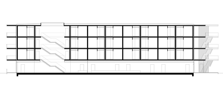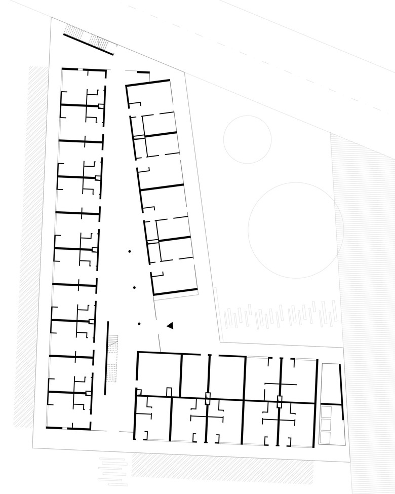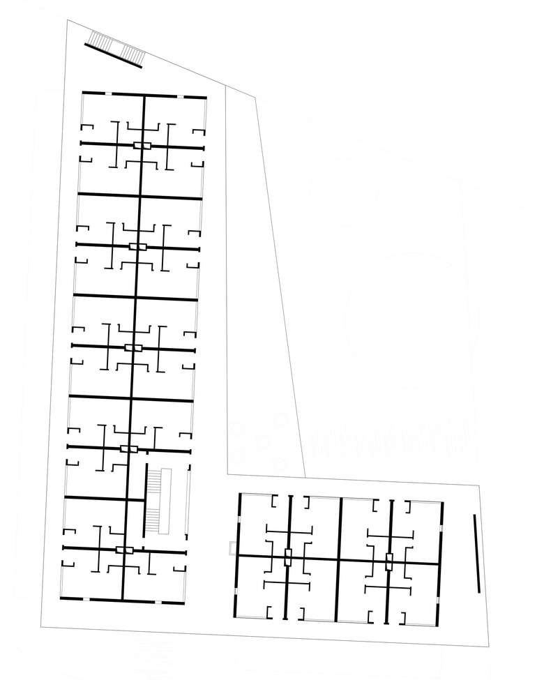 The emphasis on communication and access areas is also shown in the design of the dormitory. In contrast to common typologies, access to the building was granted by means of light and friendly outdoor arcade, thereby avoiding dark, interior access areas.