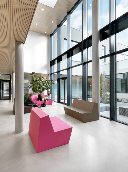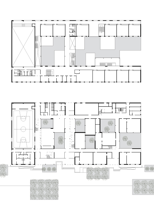 Summarised excerpt from the jury’s protocol: "The interesting atrium typology brings an innovative quality into school building. The Project distinguishes itself through its principal orientation to the site with a logical access zone in the south between the car park, the entrance area of the school and the external entrance of the gym hall. It convinces by the plain structure of the ground floor which is visible on the eastside of the building and thereby creates a direct reference to the surroundings. The merging of interior and exterior space creates interesting spatial qualities which support new teaching methods. The well-considered arrangement of the classrooms provides interesting and distinguished spaces. The spatial qualities - especially on the two usable levels of the inner courtyard - are particulary recognised. The project is also very sophisticated in that it lends itself to possible future extensions."