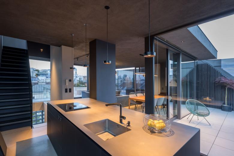 The spectacular thing about this project is that every lounge, even the bathroom, is a cosy retreat with a direct connection to the outdoors. The sweeping views over the city panorama and the sky are the perfect background with changing scenarios for daily life.