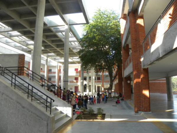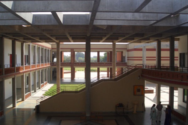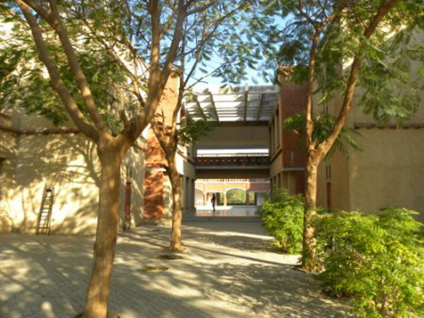 They also learn to take care of their courtyard and keep their own immediate environment clean, which fosters a sense of responsibility. These courtyard spaces have minimized the use of artificial lighting and ventilation, substantially conserving energy. The natural stone floors are cool in both feel and colour, and in some areas patterned cement flooring has been used. In the dry hot climate of Baroda the red brick building with its terracotta tiled roof has been designed to stay as cool as possible. This is managed without any air-conditioning or expensive materials such as glass and aluminium. Brick piers and vaults are constructed using local bricks by local craftsmen who bring back traditional methods of construction. Brick works as a structural material and not just as a decorative cladding.
