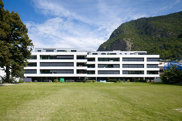Die Parzelle in Visp entstand aus einer Abparzellierung der Tennisplätze und grenzt an eine unverbaubare Parkanlage.