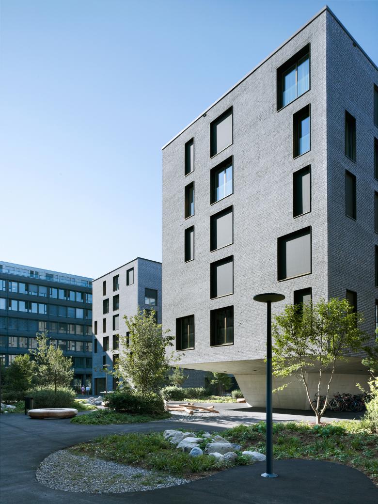 Die markanten, sechsgeschossigen Wohnbauten des Weltpostparks verdichten das Gebiet rund um das Murifeld in Bern und schaffen neuen, hochwertigen und gleichzeitig bezahlbaren Wohnraum. Durch die massiven, farblich voneinander abgesetzten Klinkerfassaden wirkt die Überbauung urban und bildet dennoch einen geschützten, attraktiveren Wohnort mit eigener Identität.