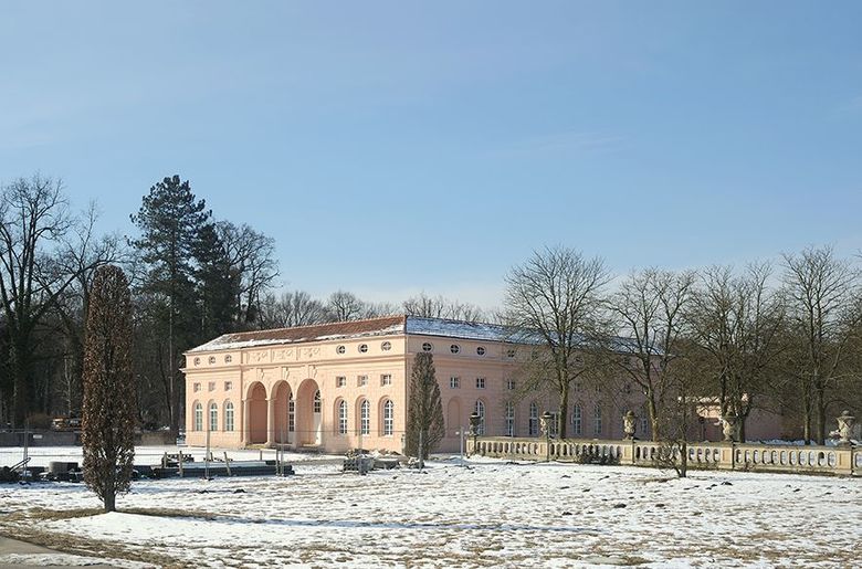 The former guard house, which was built by Carl von Gontard in 1768/69 for the New Palace is part of the world heritage site "Sanssouci". Together with the so-called Kaiserliches Baubüro (imperial construction office), built 100 years later, it is being restored according to the specifications for monument preservation and converted to the visitor centre at the New Palace.