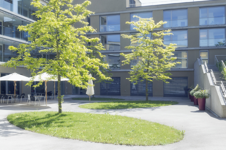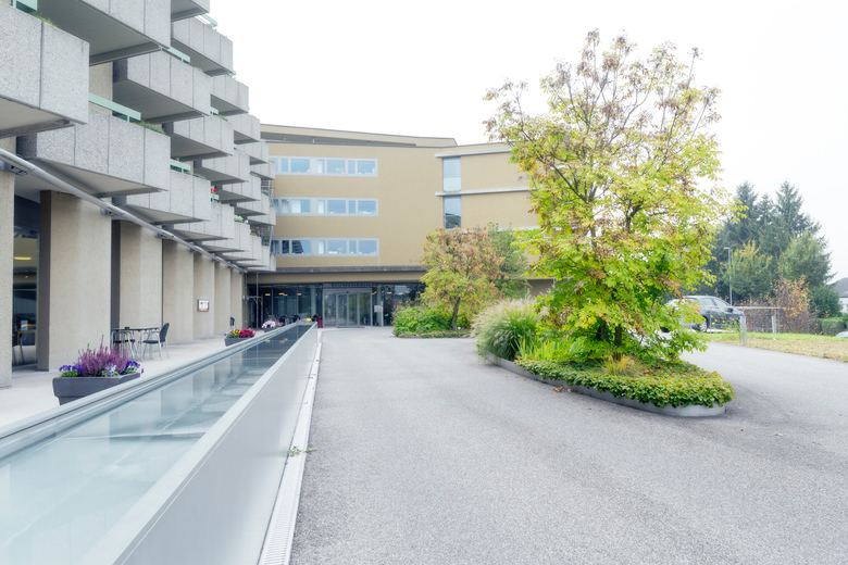Blumenwiesen bilden einen heiteren Rahmen für das Alters- und Pflegeheim Therwil. Der Eingang zum Heim ist mit Pflanzenschiffen und einem langgestreckten Wasserbecken inszeniert, die die Fläche gleichzeitig infrastrukturell ordnen. Beim Entwerfen des Dementengarten galt es, besonders sensibel auf die Bedürfnisse der Bewohner einzugehen. Bewegen, Fühlen, Riechen, Tasten – einfach ein Stück Natur erleben können: Kräuterarrangements und Beerensträucher wecken die Neugierde. In erholsamer Atmosphäre können sich die Bewohner unter Schatten spendenden Sonnenschirmen ins Aussencafé setzen und den Blick über die Bauminseln im Südhof schweifen lassen. Zu einem kleinen Spaziergang laden die locker über das Gelände führenden Wege ein.