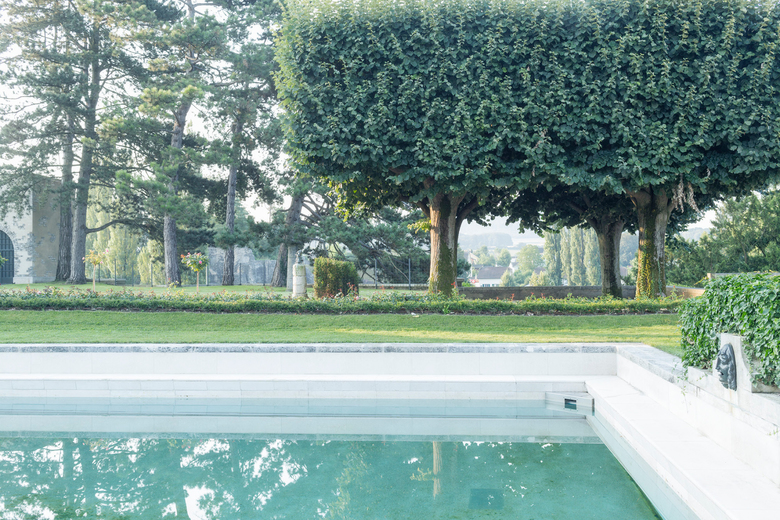Das erhabene Landgut aus dem frühen 20. Jahrhundert in Augst liess der bekennende Liebhaber zur römischen Antike und Ehrenbürger Dr. René Clavel erbauen. Idealtypisch zeigt die Anlage auf einer Anhöhe gelegen die damalige Haltung in der Gartenkunst in einer Vereinigung von Natur- und Architekturgarten mit neobarocken Elementen. Ergänzt und überformt wurde der Landsitz in den 1950er Jahren.  Im eleganten und axialsymmetrischen Architekturgarten erstreckt sich innerhalb der Parterrezone das grosszügige Wasserbassin. Dieses wird begleitet von Rosenbeeten mit immergrünen Heckenbordüren. An den Längsseiten wird der formale Teil durch zwei Baumcarrées mit geschnittenen Linden akzentuiert,  die den Blick in das weite Basel-Land lenken. Auf der gegenüberliegenden Seite des Gebäudekomplexes wirkt der Naturgartenteil wie ein Gegenpol zur formal gehaltenen neobarocken Anlage. Das gesamte Ausstattungsprogramm auf dem Gelände ist entsprechend der  Vorliebe des Bauherrn im Stil der römischen Antike gehalten. Schönholzer + Stauffer erstellten ein gartendenkmalpflegerisches Entwicklungskonzept und begleiten im Grünflächenmanagement fortlaufend die Massnahmen zur Erhaltung der Anlage.