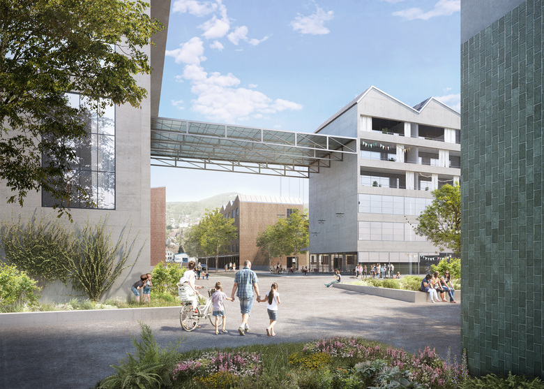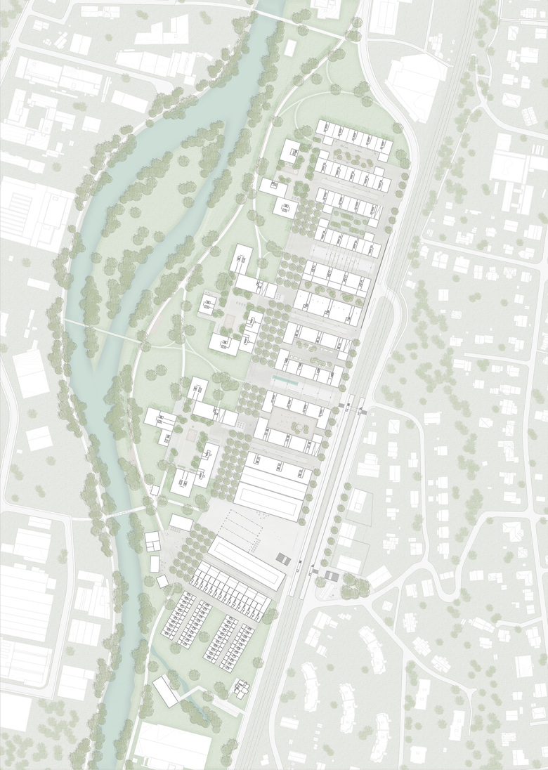 Die „Stadt am Fluss“ ist die prägende Idee hinter dem Entwurf von jessenvollenweider architektur und Stauffer Rösch Landschaftsarchitekten.