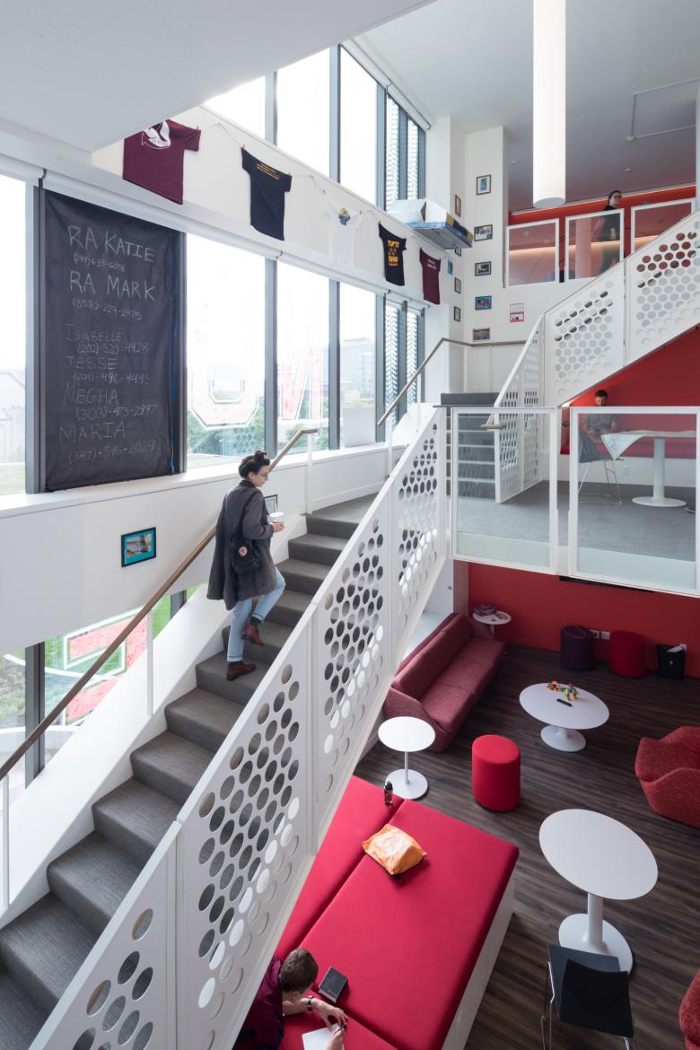 The University of Chicago wanted a new residence hall that would deliver the kind of social spaces students were asking for. They also wanted to build on their successful “house system,” which enhances the experience of campus life for undergraduates. With these parameters in mind, Studio Gang organized each house around three-story “hubs” that are designed to feel comfortable and homey as well as to encourage collaboration. Each hub offers distinct spaces for study, movie watching, food preparation, and play while also enabling all house members to gather as a complete group. Shared destination spaces such as the top-floor Reading Room offer panoramic views of the city, campus, and Lake Michigan.
