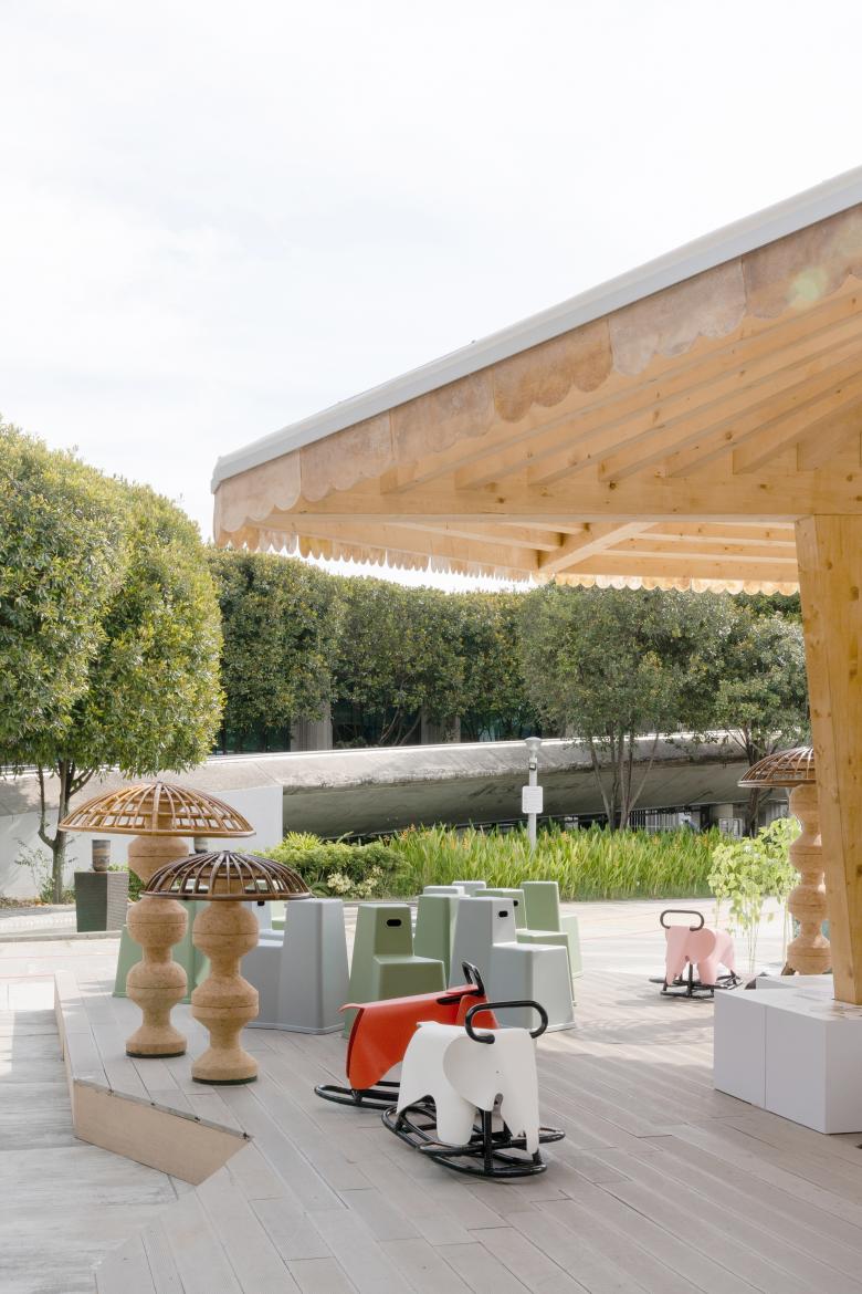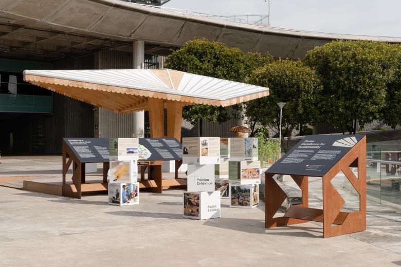 While the installation in itself is a piece of showcase, complementary exhibition signage provides deeper insights into the story of the pavilion and education on sustainability