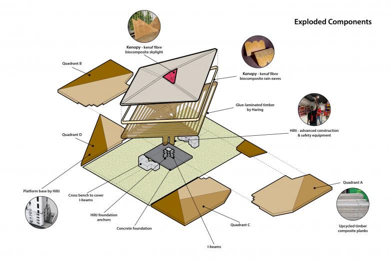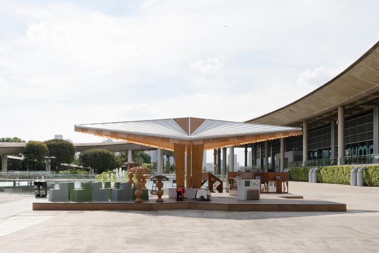 +Pavilion symbolizes the ‘sum of parts’ approach that is needed to tackle climate change as a whole: starting small, coming together as an ecosystem, and collaborating to turn ideas into reality. This project is just the beginning of something bigger, a showcase of our hopes to transform the way we build.