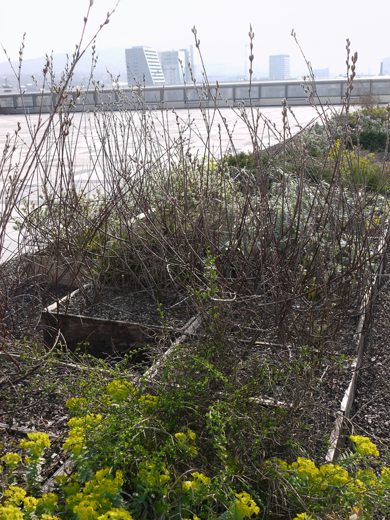This specific system and strong identity is the result of a careful study of the location and the envisaged intense level of use from the beginning, combined with the availability of water on the roof, short construction period and architectural limits on structural height. As a symbiosis of nature and artificiality, the rugged world of stacked pixels reflects the place and the environment. Here, the much-cited processuality of landscape architecture has been reversed: the process begins at the apparent end – with decay.