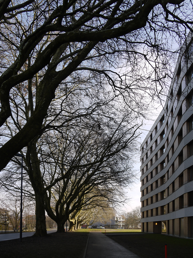 Interventions required for transforming the large areas of water and green spaces of the formerly inaccessible grounds into public open spaces were purposely kept to a mininum to safeguard functional flexibility. The aim was to preserve the existing natural and emotional qualities despite an increasing pressure on land use: seating elements strewn in the existing woods, better water quality, extensive retention of existing trees and inconspicuous informal forest paths.