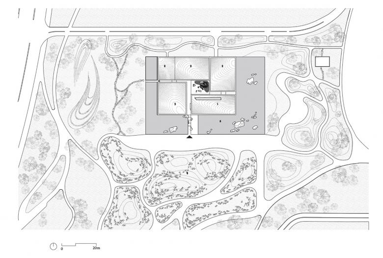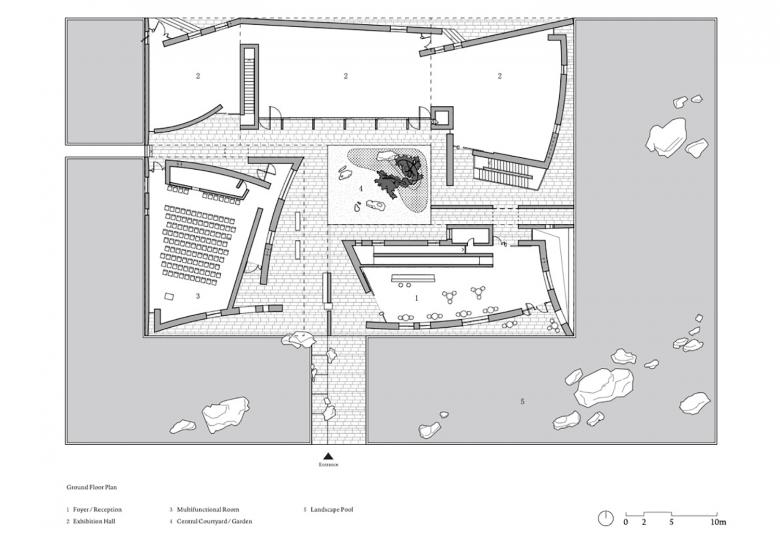 Zibo OCT Art Center, an introverted experimental work, is in an open area far away from the city. Its architectural form is conceived from the traditional Chinese academy-“Heyuan”, a central courtyard was surrounded by several houses.