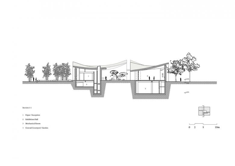 The central courtyard, a void space, can be transformed into a gathering space especially for the opening of the exhibition. When it’s a rainy day, semi-outdoor activities are permitted in the corridor. The building is a sponge-like porous building, which can accommodate many people, create a lot of shadows, achieve shading and shelter from rain, etc.