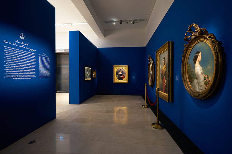 Das räumliche Konzept für das Untergeschoss ist einer Schlossarchitektur entlehnt, wo der Besucher über einen stilisierten, barocken Vorhof in eine Raumenfilade ins Innere eines Gebäudes gelangt. Geprägt wird diese Ausstellung durch eine kräftige, moderne Farbwahl der Wände, die einen Komplementärkontrast zu den darauf hängenden Bildern bieten und sie dadurch noch stärker in den Fokus rücken. Das fein akzentuierte Licht der Gemälde wurde durch eine dramatisch-theatrale Ausleuchtung noch verstärkt.