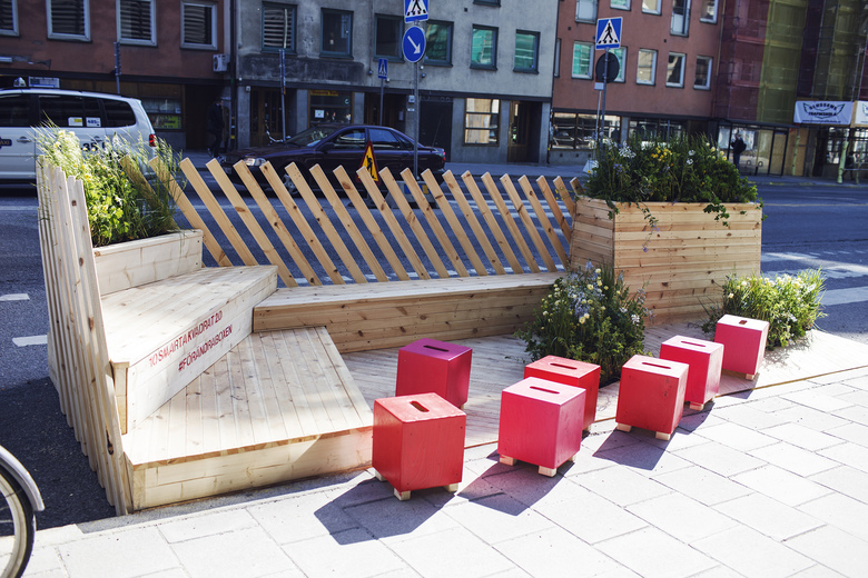 Tengbom transformed a parking space on Katarinavägen in Stockholm into a neighbourhood node, public meeting place and surface water management during June 2015. The project is an example of green retrofits - strategies for refurbishing grey infrastructure into green infrastructure, and examining what this transformation means for public space. The conversion of parking spaces to community nodes with ecosystem services may be closer than we think.