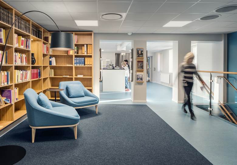 Another aspect which the presiding judge liked was a building that told stories. Tengbom has also designed the interior and Carl Olofsson saw an opportunity to incorporate the courthouse’s history in the interior. There was an existing decision that the courtroom doors should be of walnut with elements of oak. Olofsson’s solution was a striped pattern with references to the five key years for the building. At the bottom of the doors is a code with lines that form the year. Tengbom has a frame contract with the Swedish National Courts Administration and designs interiors for courts throughout Sweden. The interiors in Alingsås District Court are designed by Karin von Geijer.