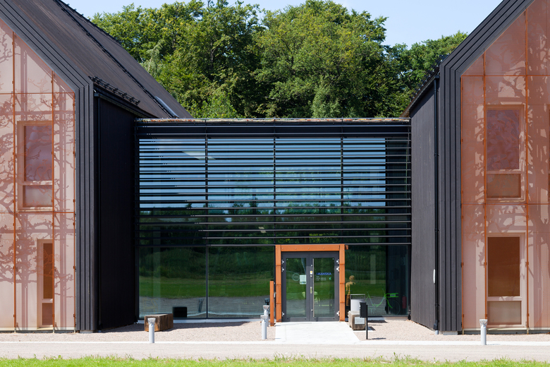 The building’s 70 workspaces unites the company’s 6 operating units. Two gently-angled volumes form an intermediate space with a foyer, reception and central core. The space opens out, enabling visual contacts and movement between the buildings’ work zones, encouraging collaboration, spontaneous meetings and wide-ranging interaction.