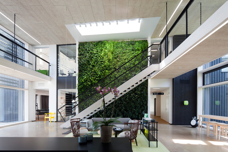 The building is LEED certified, a score of 95 points makes it Europe no 1 in its class. The building’s energy concept gave rise to the first Nordic office building that generates more electricity than it consumes. Additional prioritised environmental goals include zero “phase-out substances”, zero landfill waste, the prioritisation of locally produced materials, and reduced water consumption.