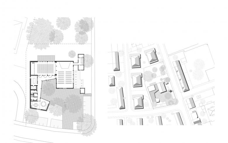Das neue Gebäude mit Räumen für die Gemeindearbeit zeigt sich als räumliche Ergänzung, jedoch nicht in Konkurrenz zur bestehenden Kirche. Es entsteht ein offener Hof als Treffpunkt und Festplatz für die Kirchengemeinde. Der schöne, alte Baumbestand wird erhalten und das neue Gemeindehaus als ergänzendes Element in den „Johannespark“ integriert. Es entsteht eine Einheit aus Kirche, Gemeindehaus und großen Bäumen.