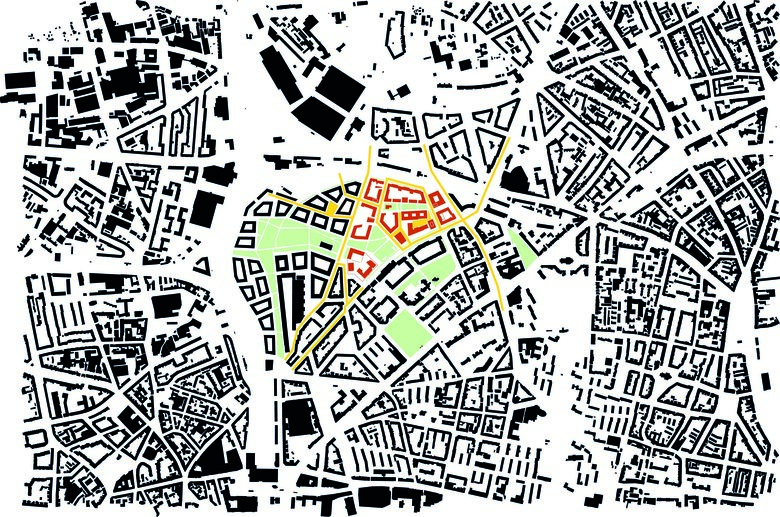 Für die geometrische Grundordnung des neuen Holsten Quartiers sind sowohl der polygonale Umgriff des Neuordnungsgebietes wie auch die räumlich divergierende Anordnung der erhaltenswerten Brauereigebäude und eine vernetzende Aufnahme der einmündenden Grünzüge und Straßen maßgebend. Strukturell und morphologisch vermittelt das Holsten Quartier somit sowohl zu dem angrenzenden Gefüge des neuen Stadtteils von Altona-Mitte wie auch zu den Baugebieten des 19. und 20. Jahrhunderts.