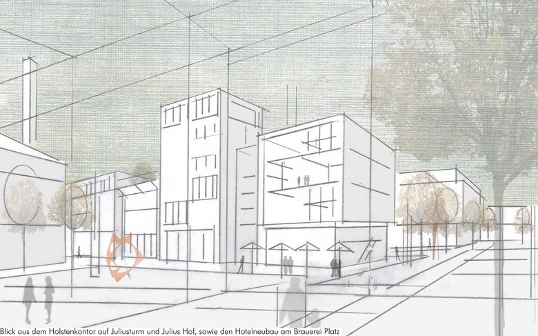Auf dem Areal der aufgelassenen Holstenbrauerei entsteht ein dichtes, urbanes und durchgrüntes Stadtquartier, das sich im Kernbereich mit Raumfolgen und aus der Gründerzeit der Brauerei umgenutzten Gebäuden auch über die Geschichte des Ortes definiert. Diese repräsentativen kräftigen Industriebauten werden mit neuen zentralen und publikumsfrequentierten Funktionen zu identitätsgebenden Bausteinen des Quartiers.