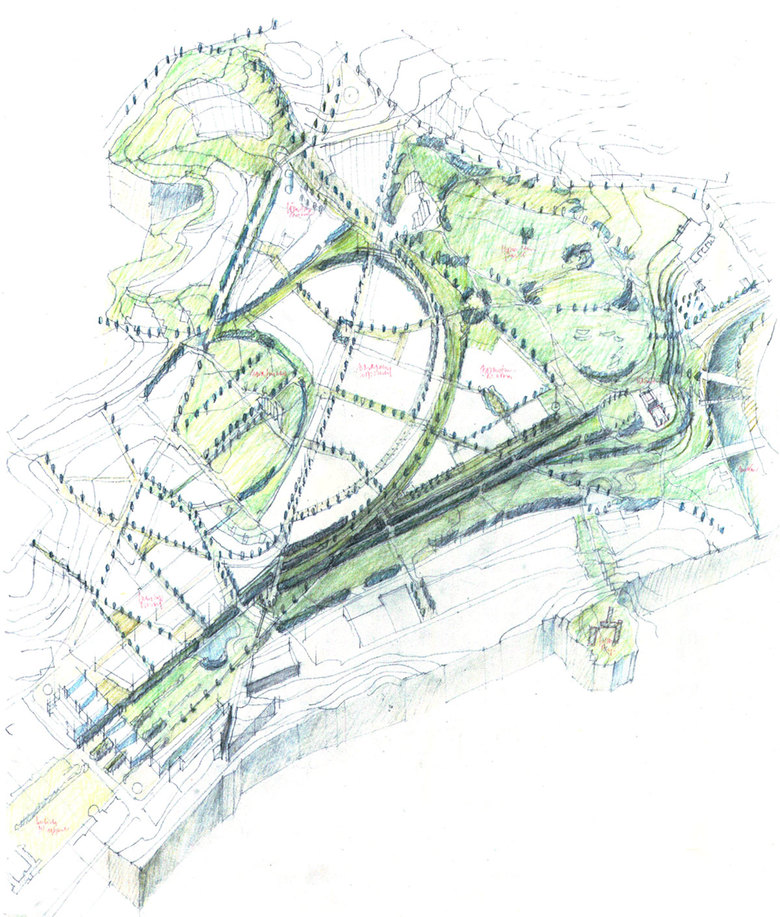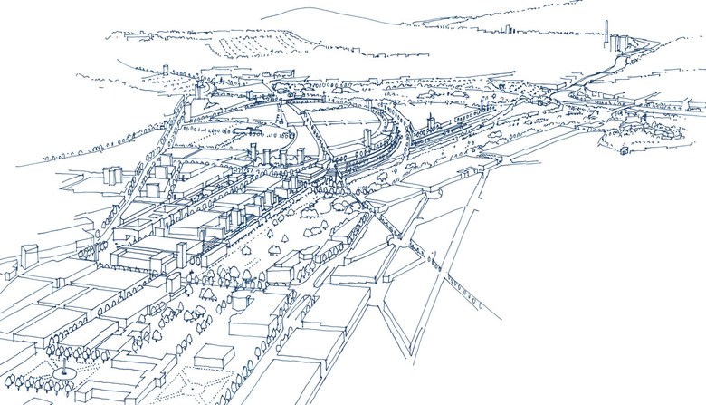 Mit dem geplanten Umbau des Stuttgarter Hauptbahnhofs zu einem Durchgangsbahnhof und der Neutrassierung der Gleisanlagen in Tieflage steht für die ca. 100 ha großen innerstädtischen Bahnflächen eine Umstrukturierung zu neuen Stadtquartieren und Grünräumen an. Der gesamte Neuordnungsbereich von bestehenden und neuen Baufeldern wird in einer signifikanten Stadtfigur zusammengefasst und so in die Stadtlandschaft gelegt, dass der Schlossgarten als verbreiterter Landschaftsraum von der Innenstadt zum Neckar durchfließt. Durch Aufnahme der Konturen des Nordbahnhofsviertels und Umwidmung von Bahntrassen zu Grünzügen entwickelt sich ein unverwechselbarer Stadtgrundriss, der auch die bahntechnische Geschichte im Stadtgrundriss verankert und räumlich lesbar macht.