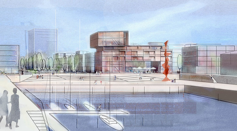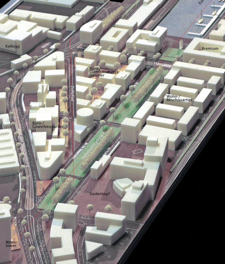 Kennzeichnend für die Hafenvorstadt ist eine Bauweise, die nicht die Geschlossenheit innerstädtischer Blockrandbebauungen aufnimmt, sondern eine den Baufeldern folgende Komposition kräftiger, kompakter Baukörper in offener, raumbildender Anordnung darstellt. Plastizität und architektonisches Erscheinungsbild korrespondieren mit der Rationalität eines hafenbezogenen, industriellen Bauens.