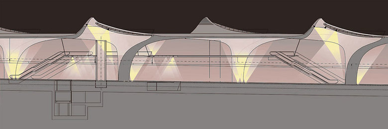 Der Bahnhof empfängt Besucher und Reisende in lichtdurchfluteten Hallen, insgesamt prägen Helligkeit und Leichtigkeit das Gesamtbild des neuen Ensembles, dessen größtenteils unterirdische Natur an kaum einer Stelle ins Bewusstsein tritt. Einen wesentlichen Beitrag dazu leisten die markanten Kelchstützen, die viel Tageslicht nach innen führen und mit ihren nach außen tretenden Wölbungen einen starken Akzent im städischen Raum setzen.