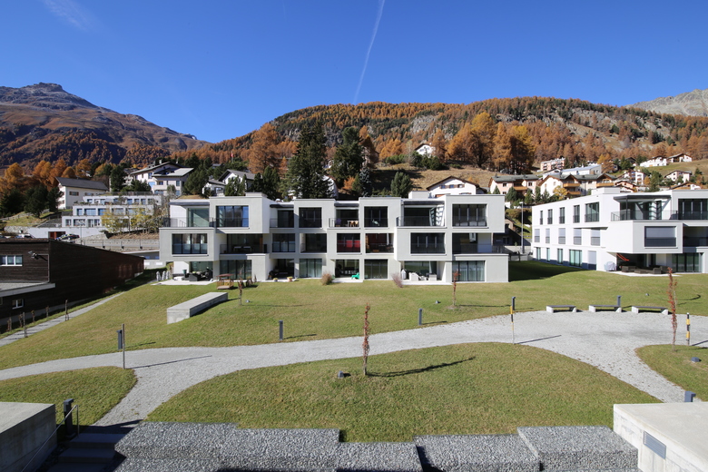 Die Überbauung liegt in nordöstlicher Richtung, ausserhalb des Dorfkerns, auf einem zwischen der Ausfallsstrasse Quadratscha und den Bahngleisen abfallenden Grundstück. Das unmittelbare Umfeld, welches ein äusseres Tor zum Dorf Samedan darstellt, wird durch die heterogenen Umgebung und Nutzungen geprägt. Zudem sind die topografischen Eigenschaften und die schlechte Bodenbeschaffenheit des Ortes für den Entwurf mitbestimmend.