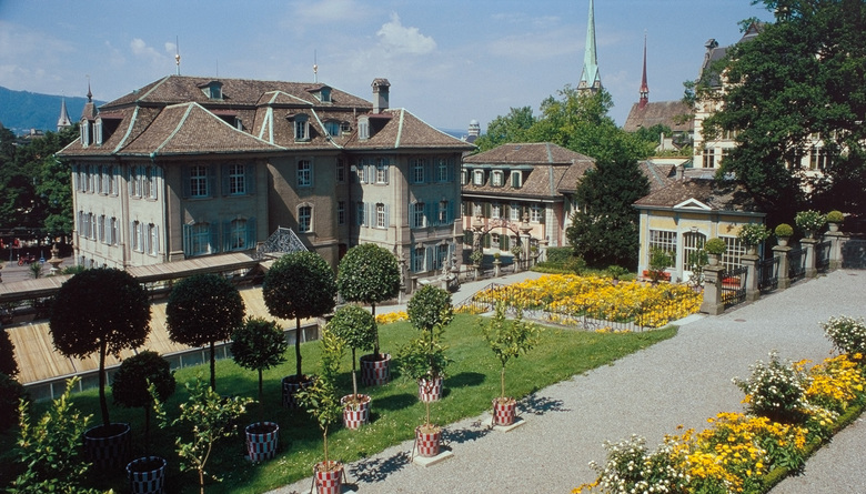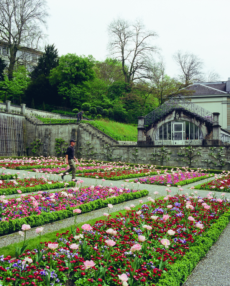 Der Garten zum Palais stammt aus der 2. Hälfte des 18. Jahrhunderts und gilt als einer der prächtigsten Barockgärten der Stadt Zürich. Er wurde seit seiner Erstellung oft umgestaltet. Nach dem Wegzug der Universitätsgärtnerei im Jahre 1985 sind die alten Treibbeete abgebrochen und der ganze Garten ist der Öffentlichkeit zugänglich gemacht worden. Die nach denkmalpflegerischen Kriterien wichtigen Mauern, Wiesenböschungen und Bäume werden als originale Substanz der verschiedenen Bauetappen geschützt und sanft saniert. Zusätzliche Einbauten und Pflanzungen ergänzen den Garten nach historischem Vorbild in zeitgenössischer Sprache. Seit 1992 wachsen in buchsgefassten Beeten Reben, Birnenspaliere, Weichseln und Blumen. Der Wechselflor wird jedes Jahr farblich neu zusammengestellt. Der grosse gärtnerische Aufwand ist dank der eigenen Universitätsgärtnerei möglich. Der Rechberggarten dient als Ort der Entspannung inmitten der Stadt. Der prachtvolle Ziergarten erzählt sowohl vom alten Zürich wie von den wechselnden Gartenmoden.Hochbauamt Kanton Zürich