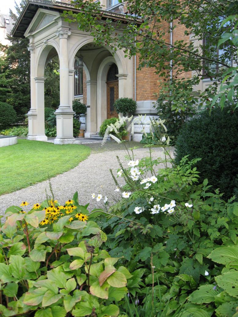 Viele der alten Villengärten sind heute parzelliert und überbaut, nur wenige erhalten geblieben. Die späthistoristische Gartenanlage von Otto Fröbel und Evariste Mertens zur 1887 errichteten neutoskanischen Villa von Architekt Alfred Bluntschli sollte in den 1970er Jahren überbaut werden. Glücklicherweise konnte die Stadt Zürich die Villa und den Garten 1973 unter Schutz stellen und 1983 kaufen. Das Schweizerische Institut für Kunstwissenschaften SIK erbaute vor dem Haupteingang eine unterirdische Bibliothek. Ein linsenförmiges Oberlicht im wiederhergestellten Rasenrondell sorgt für eine natürliche Belichtung des unterirdischen Leseraums, der damit sowohl von Innen als auch von Aussen als zentraler Bestandteil der Gesamtanlage erlebbar wird. Andere bauliche Elemente im Freiraum haben wir restauriert, zum Beispiel die Zäune, oder rekonstruiert, wie die verwitterten Pergola-Aufbauten. Die Atmosphäre im Garten wird durch die Patina des Alters bestimmt – mit dem Moos an den dicken Stämmen, dem waldartigen Unterwuchs unter den grossen Bäumen oder der dicken, weichen Kiesschicht. Mit der Sanierung haben wir die Spuren der Vergänglichkeit, eine Besonderheit von alten Gärten, bewusst erhalten. Die neu bepflanzten Staudenrabatte verdeutlichen die verschwenderische Üppigkeit von historischen Villengärten. Die einfühlsamen Gärtner der «Grün Stadt Zürich» vermögen den Garten in einem Zustand zu halten, der uns glauben macht, die Natur würde das alles von alleine schaffen. So wird jene Sehnsucht nach unverfälschter Natur spürbar, die ein Garten in uns zu erwecken vermag.