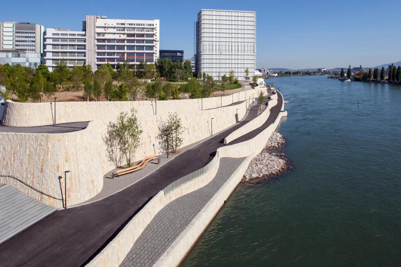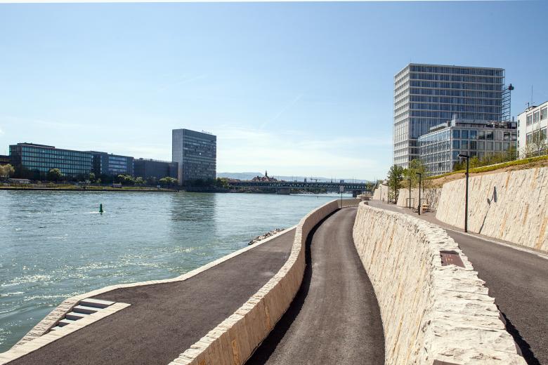 Am Rheinufer zwischen dem St. Johanns-Park und der französischen Grenze, wo früher ein geschlossenes Hafenareal lag, ist eine neue Promenade für Fussgänger und Fahrradfahrer entstanden. Sie ist das Resultat von neun Jahren Planung und Bau. Die über 600 Meter lange Promenade zwischen Rhein und Novartis Campus ist nur 10 bis 30 Meter breit, überwindet aber eine Höhe von bis zu 10 Metern.