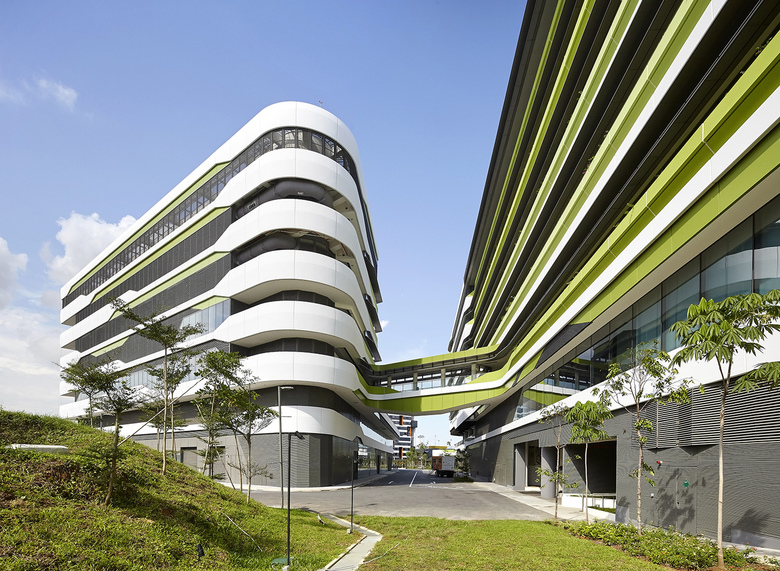 The SUTD project is divided into phases: phase 1 - which is now complete - incorporates buildings 1 and 2 and parts of buildings 5 and 3.